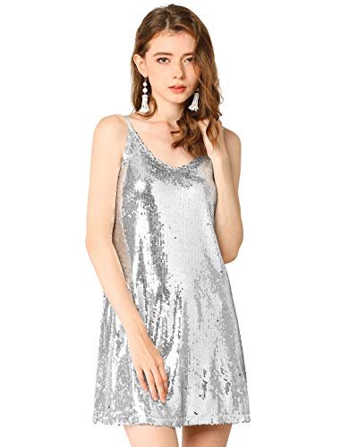 Allegra K Women’s Glitter Sequin Dress V Neck...