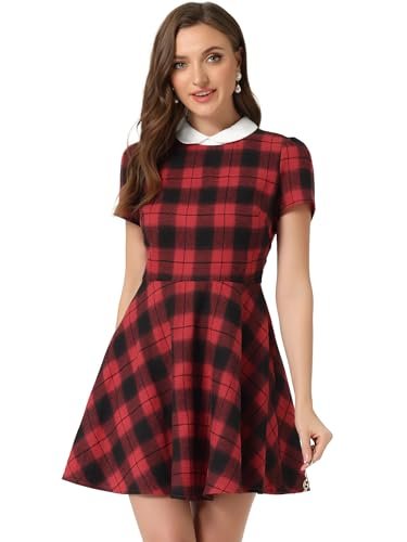 Allegra K Klänning för kvinnor, rutig med Peter...