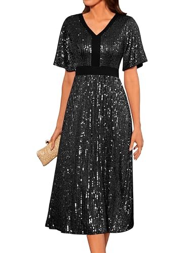 GRACE KARIN Festklänning med paljetter för kvinnor, V-ringad,...