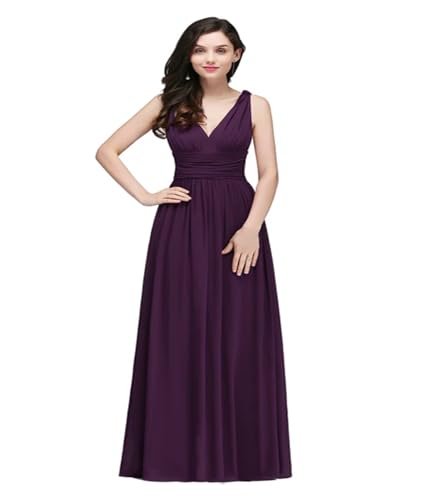 LCKKJHG Lång brudtärna klänningar för kvinnor chiffong v-ringad...
