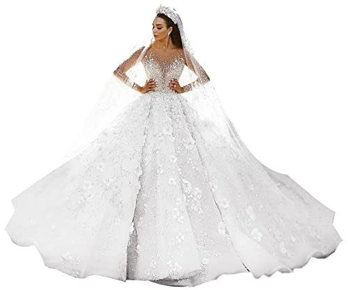 Lyxig Balklänning Bröllopsklänningar Pärlor Blommor Tyll Saudiarabien Dubai...
