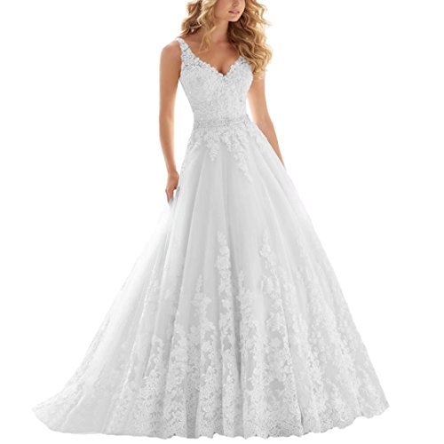 Nanger dam V-ringad spets bröllopsklänning prinsessa brudklänning lång...
