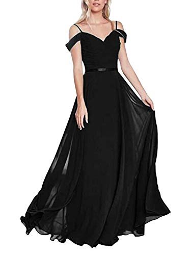 Off the Shoulder Lång brudtärna klänningar chiffong balklänning...
