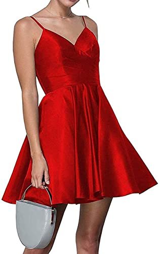 SAYNO Hemkomstklänning för kvinnor, kort satin, v-ringad, spagetti,...