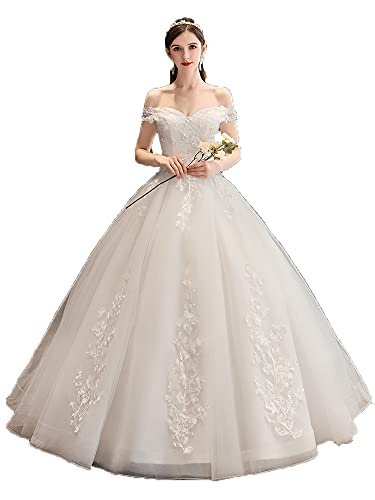 Shoudian Kvinnors brud elegant lyxig spets axelbandslös bröllopsklänning...