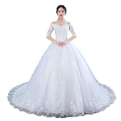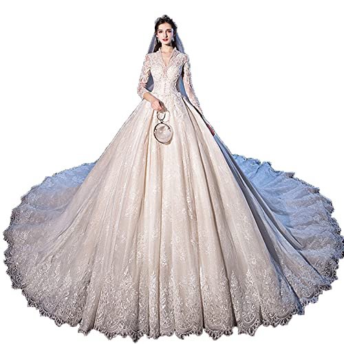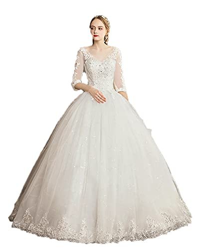 Shoudian Kvinnors brud elegant spets v-ringad långärmad bröllopsklänning...