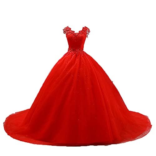 Shoudian Kvinnors elegant V-ringad spets bröllopsklänning brud brud...