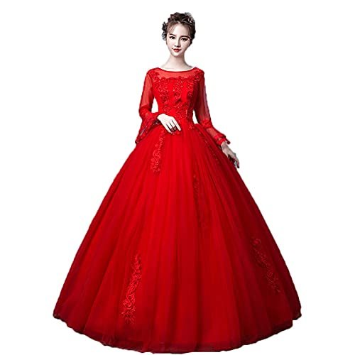 Shoudian Kvinnors elegant lyxig spetsbroderi bröllopsklänning brud snörning...