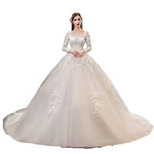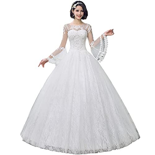 Shoudian Kvinnors elegant snörning bröllopsklänning brud spets långärmad...