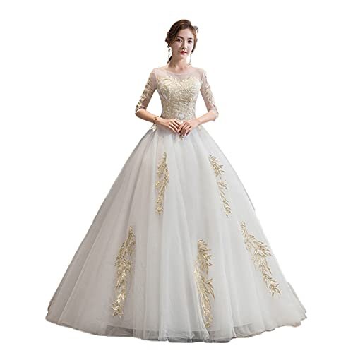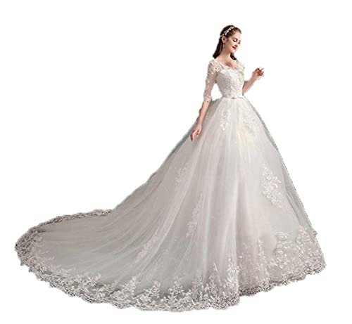 Shoudian Kvinnors elegant spets bröllopsklänning brud trekvartsärm balklänningar...