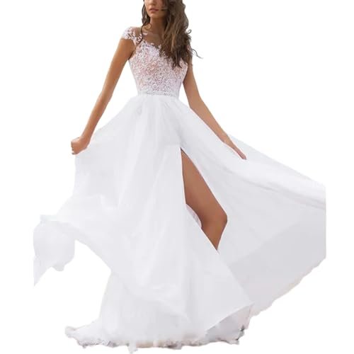 TEidea Elegant damklänning utan ryggstöd spetsklänning festklänning: vit...