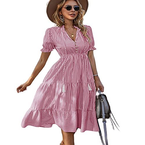 TOBILE Klänning kvinnor elegant randig lykta ärm sommarklänning...