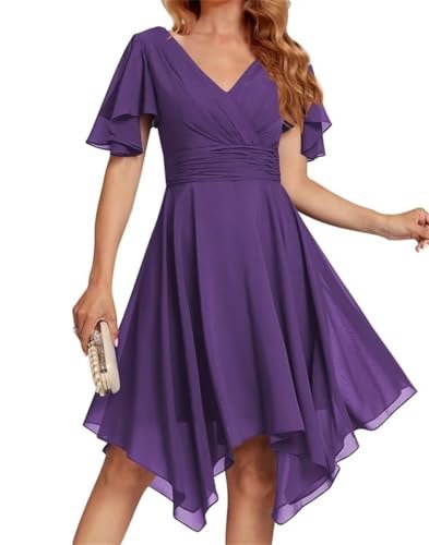 WSEYU V-ringad hemkomstklänningar korta brudtärneklänningar asymmetrisk examen cocktail...