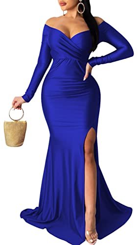 Dam off shoulder formell långärmad klänning axelbandslös rynkad...