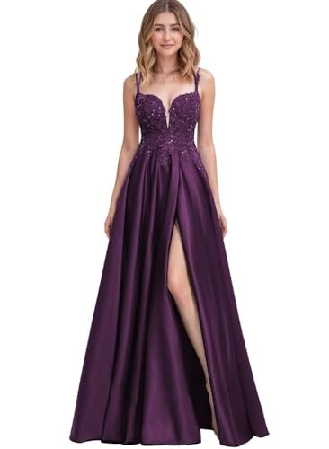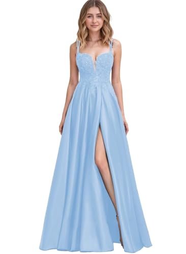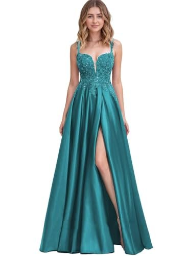 Generico Dam spets Applikation Spaghetti Axelband Balklänningar Lång...