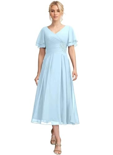 Generico Tea Length Brudens Mor Klänningar Chiffong Plisserad...
