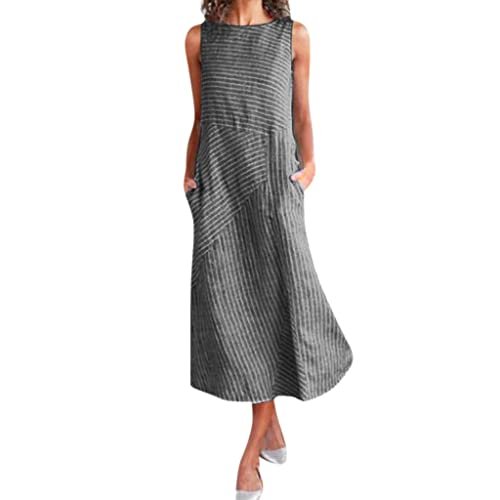 Kanpola dam linneklänning ärmlös rund hals swing tank-klänning...