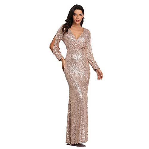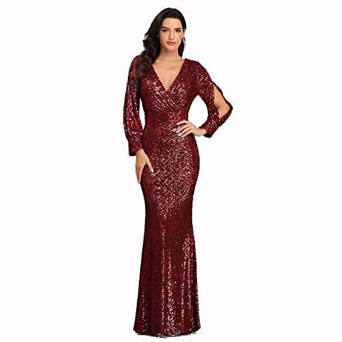 Festklänning långärmad v-ringad aftonklänning paljetterad fisksvans aftonklänning formell...