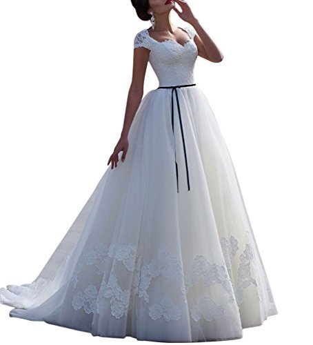 APXPF Damkeps ärmar spets applikation bröllopsklänning för brud...