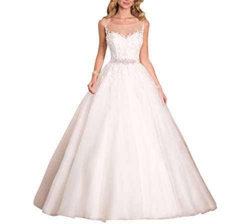 XUYUDITA Illusion spets en linje eleganta långa bröllopsklänningar...