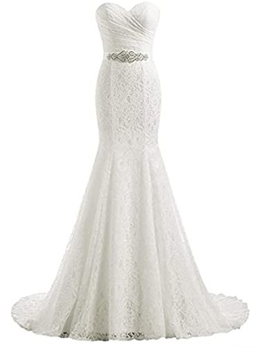 XUYUDITA Kvinnor Brud Full Strand Spets Bröllopsklänning Sjöjungfru...