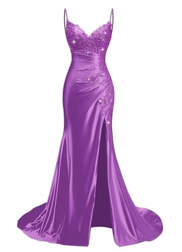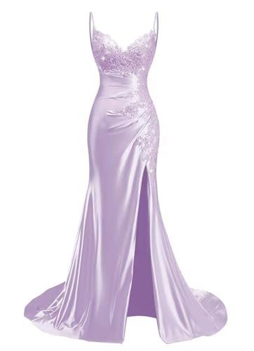 KIYNE Spaghettirem satin balklänningar med slits spets applikation...