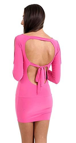 - Dam sexig rygg mindre lång slitsad ärm med bälte miniklänning