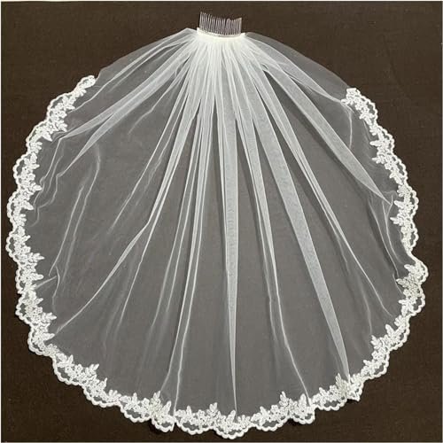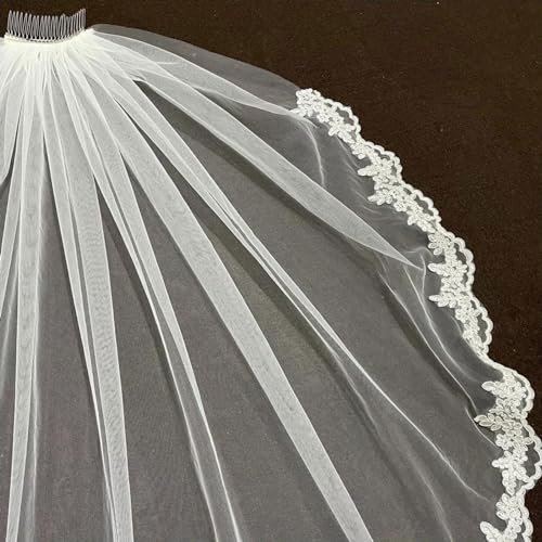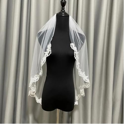 Short One-Layer Lace wedding Bridal Veil Elbow length...