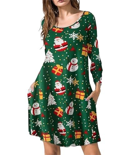Designidé: Damklänningar för fester har jultomtetryck, snögubbe och julälg. Dessutom förbättrar midjekorsetten dina kurvor och gör att du sticker ut på julen.