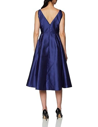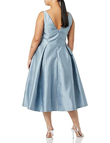 Te-längd passform-och-flare klänning med hög båthals och djup V-rygg