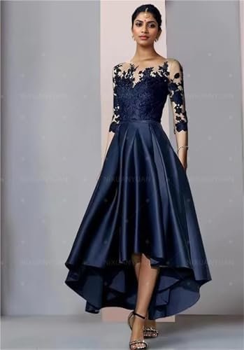 AHUFGN Bröllopsklänning bröllopsapplikationer satin V-ringad asymmetrisk knälång A-linje...