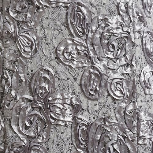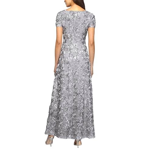 Kortärmad paljetterad klänning med allover metalliska rosetter och lång A-linjekjol
