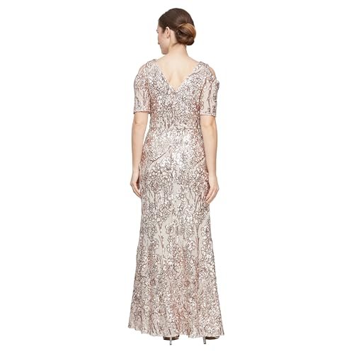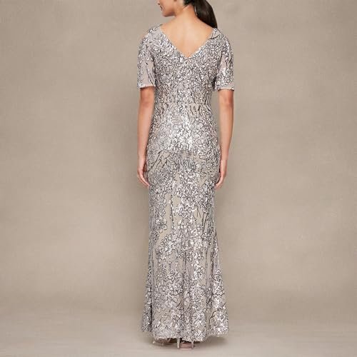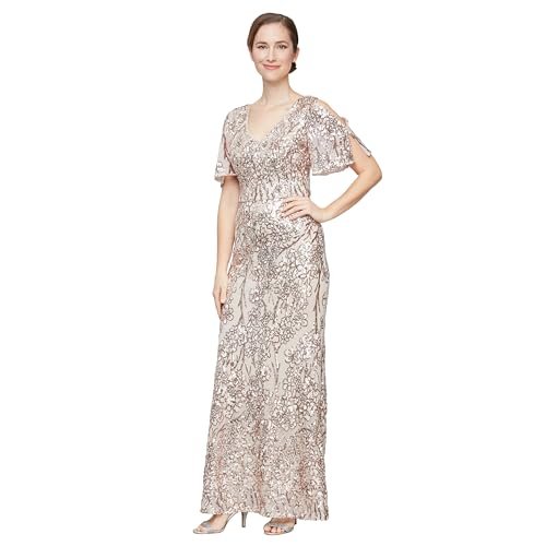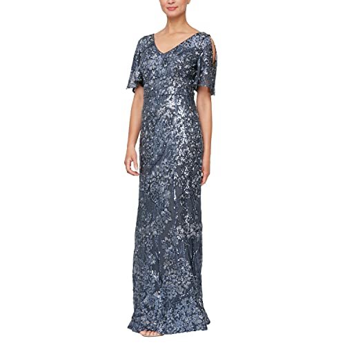 Alex Evenings dam satin ballgown klänning med ärm...