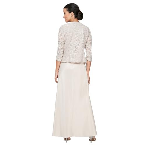 Tidlös elegans: Fantastiskt spetsliv och jacka i kombination med en elegant satinkjol – perfekt för brudens mor, formella evenemang och kvällsgalor.