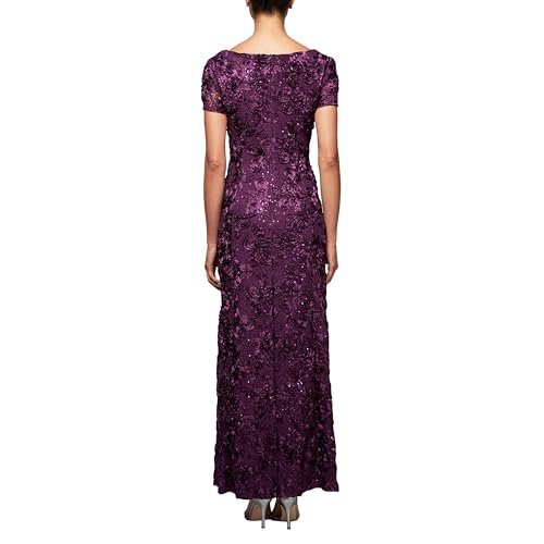 Kortärmad paljetterad klänning med allover metalliska rosetter och lång A-linjekjol