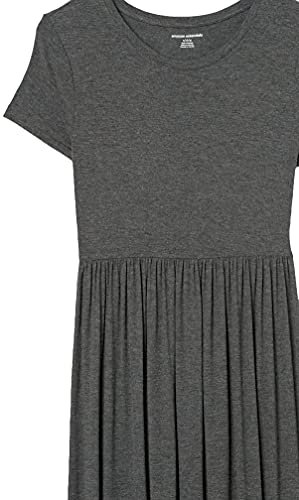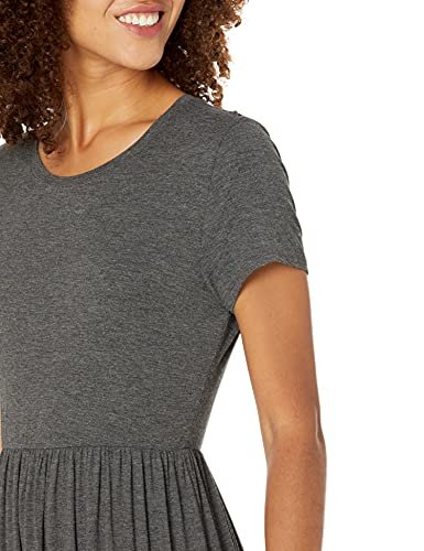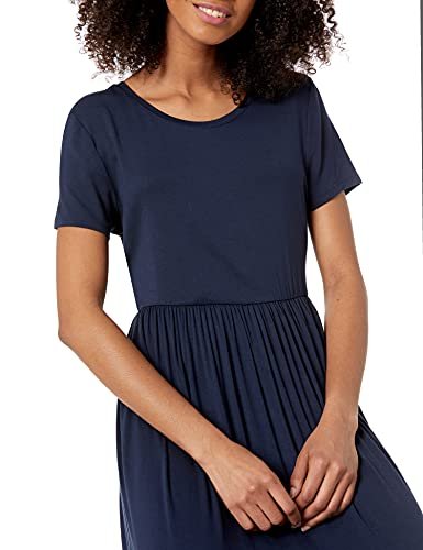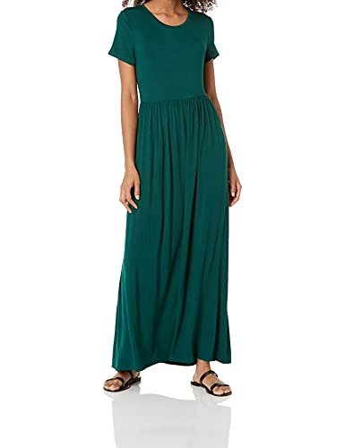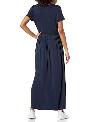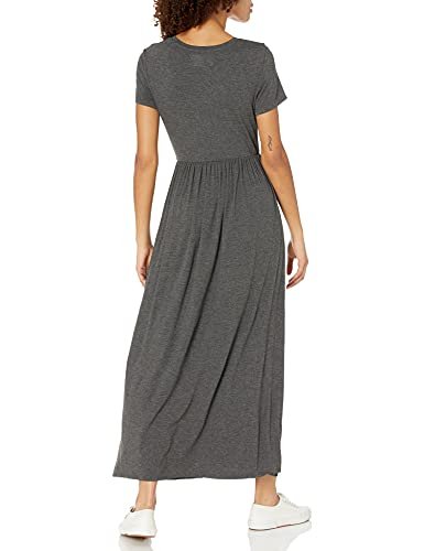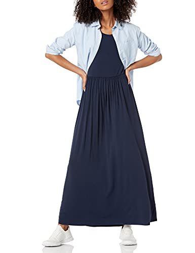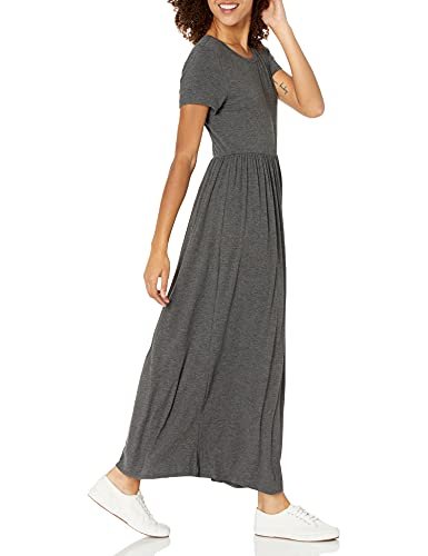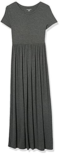 ENKEL STICKAD KLÄNNING: Denna mångsidiga och figursmickrande maxiklänning övergår sömlöst från dag till natt. Para med dina favoritsneakers för en dag som utforskar staden eller klä upp dig för en kväll ute med Amazon Essentials vadderade glidsandaler för kvinnor.
