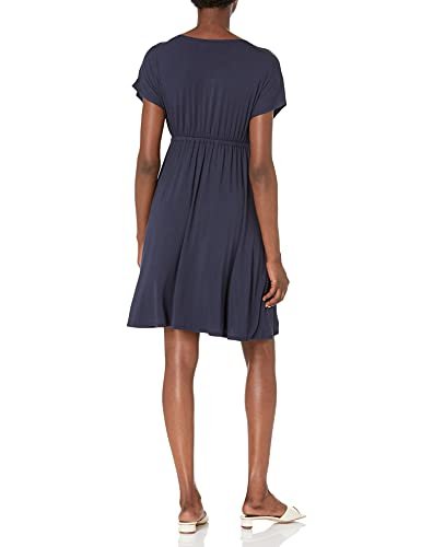 Stickade vardagskläder: Denna mångsidiga och figursmickrande flödande klänning övergår sömlöst från dag till natt. Para med dina favoritsneakers för en dag som utforskar staden eller klä upp dig för en kväll ute med Amazon Essentials damsandaler.