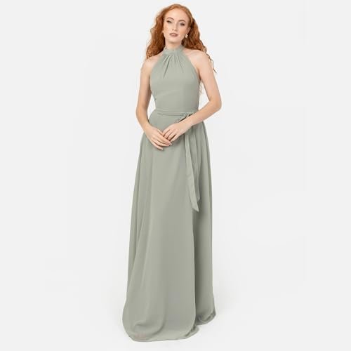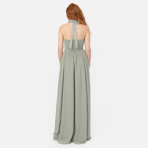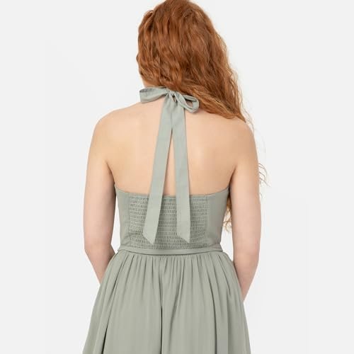 • MAXI DRESSES: Den ärmlösa maxiklänningen för kvinnor har en elegant halterneck med knytband som skapar en söt rosettfunktion, som är ekig på midjelinjen med ett knytband. Den låga ryggen av bodice är tröja för en elegant klänning med den perfekta blandningen av komfort och stil.
