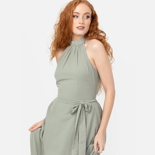 MAXI DRESSES: Den ärmlösa maxiklänningen för kvinnor har en elegant halterneck med knytband som skapar en söt rosettfunktion, som är ekig på midjelinjen med ett knytband. Den låga ryggen av bodice är tröja för en elegant klänning med den perfekta blandningen av komfort och stil.