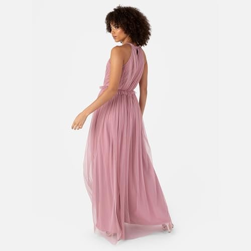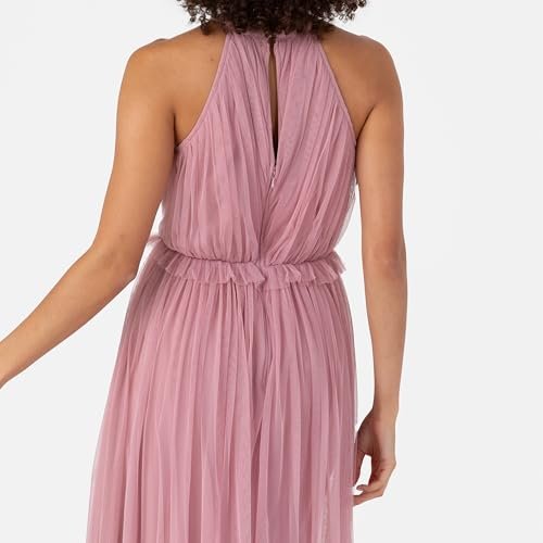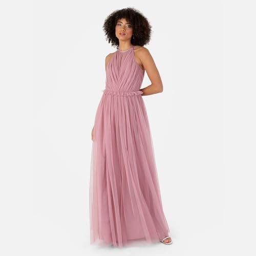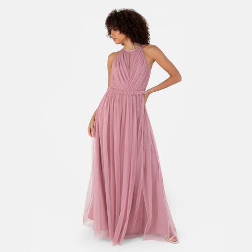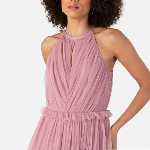- MAXI EVENING KLÄNNING – maxiklänningen för kvinnor har en elegant halterneck och en mjuk golvkjol som flyter ut från midjan vilket ger klänningen en romantisk finish. Volang detaljer belyser midjan på denna fantastiska balklänning. Den långa klänningen har en söt nyckelhålsdetalj på framsidan.