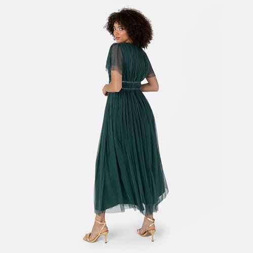 • Midaxi-klänning – Midaxi-klänningen för kvinnor har en elegant V-ringad, vackra fladdrande ärmar och en A-linjekjol, utsvängd från midjan för att ge ankellängdsklänningen en romantisk finish.