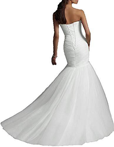 ANJURUISI Bröllopsklänning med sjöjungfru veckad tyll med hjärthals,...