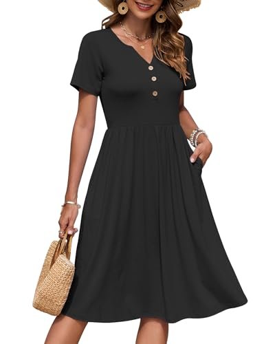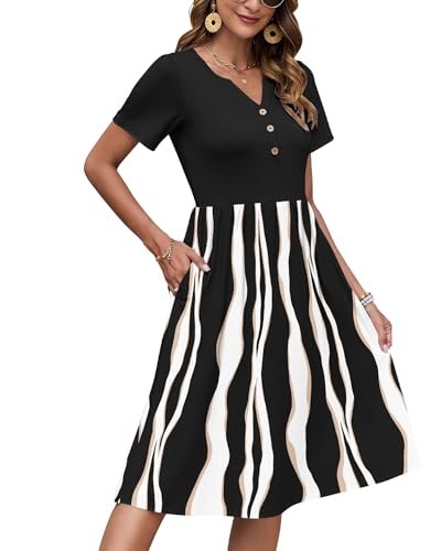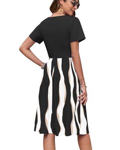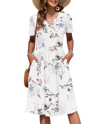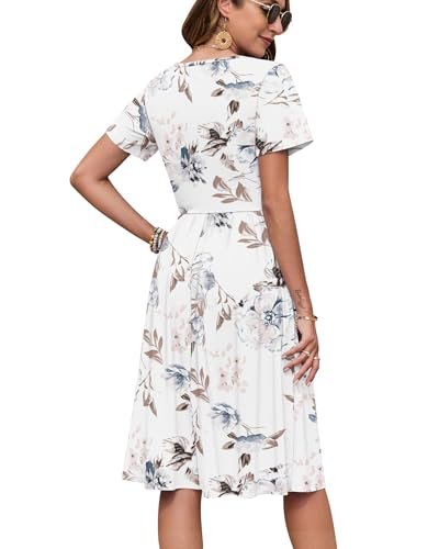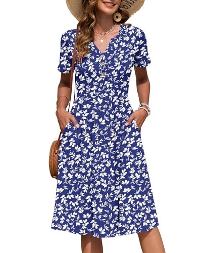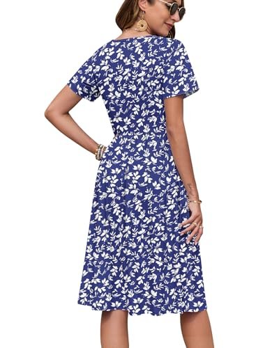 AUSELILY Kortärmad sommarklänning för kvinnor, med empirmidja, midi-längd,...