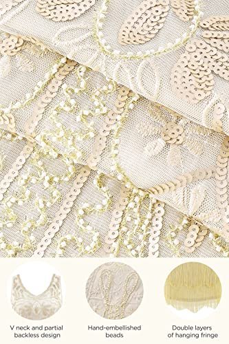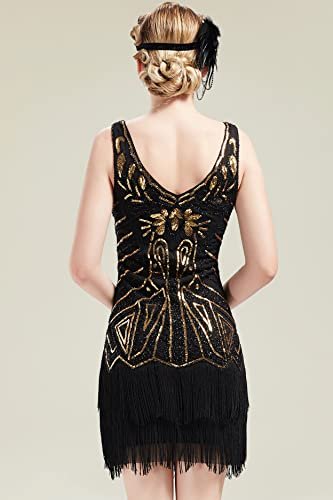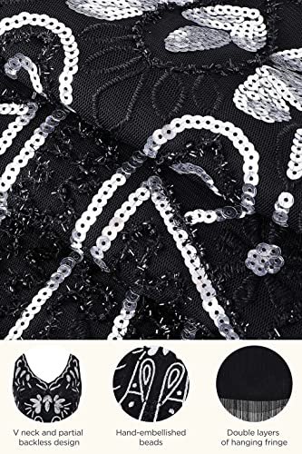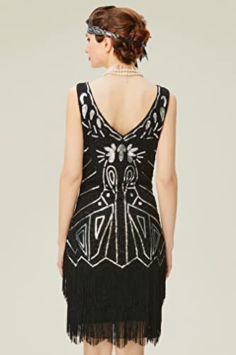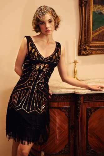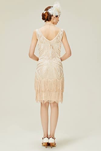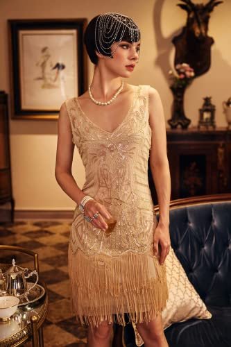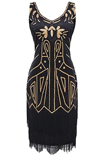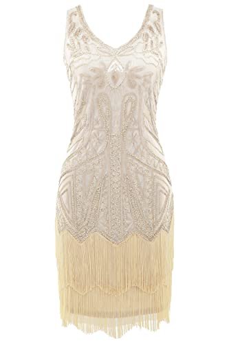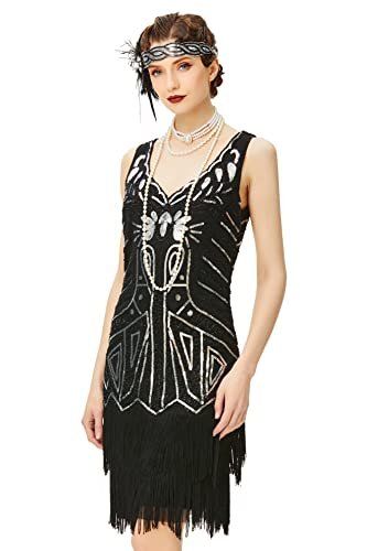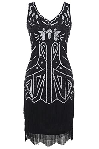 Babeyond Flapperklänning, V-ringad, med pärlor och fransar, 20-talsklänning,...