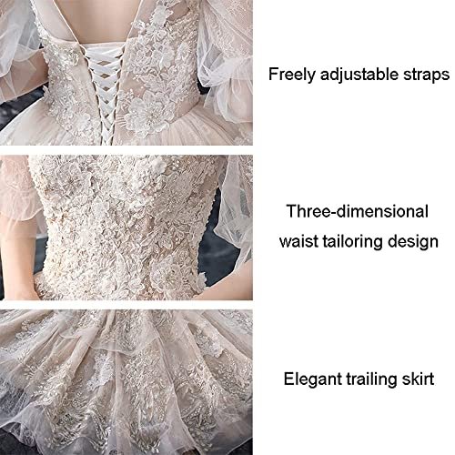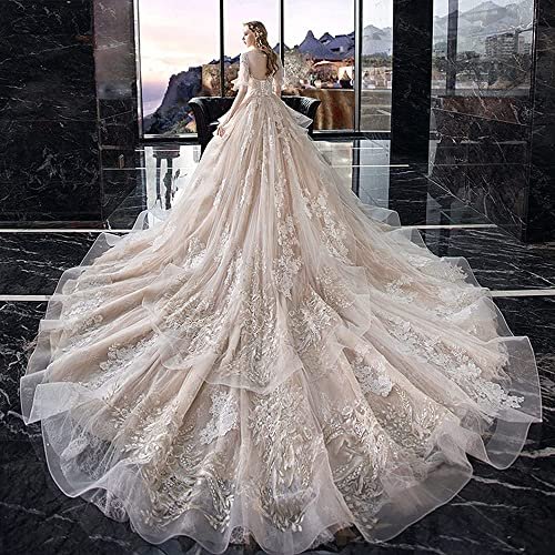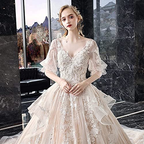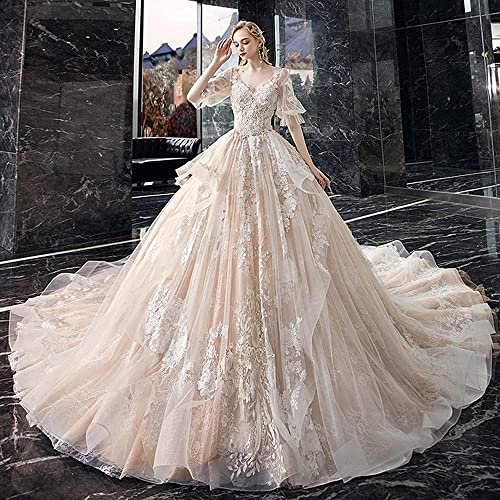 Barock bröllopsklänningar nät spets V-ringad kvinnor släpande kjol...