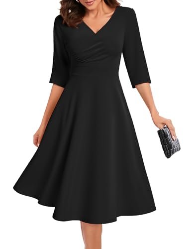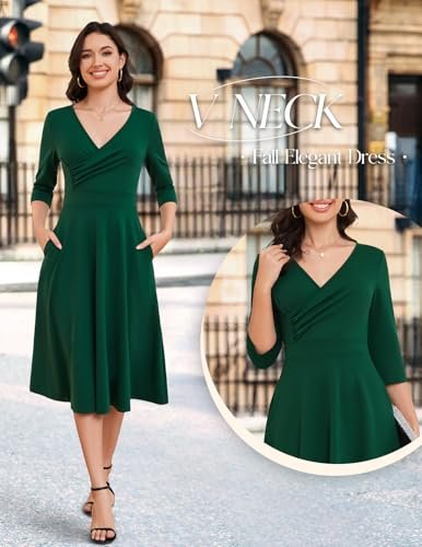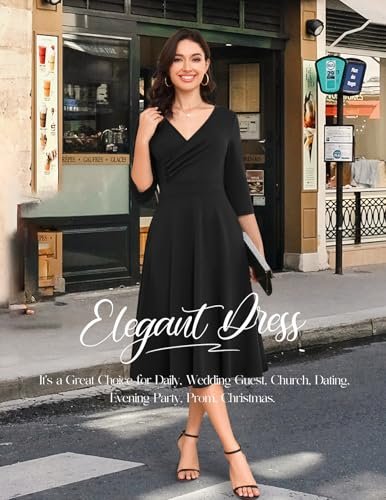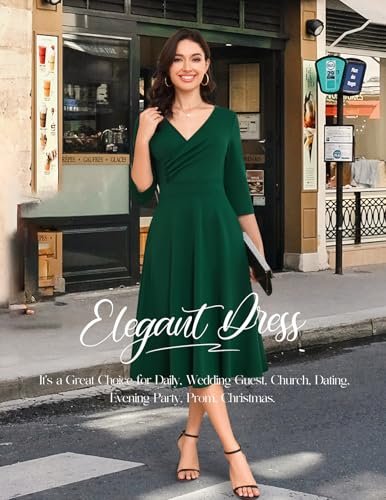 - Vintage cocktailklänningar: Denna 3/4-långa A-linjeformade klänning har en smickrande omlott-V-ringning som framhäver din figur. Den midi-långa längden till kalven ger elegans, vilket gör den perfekt för bröllop, cocktailpartyn och formella evenemang. Om du ligger mellan två storlekar rekommenderar vi att du väljer en mindre storlek för bättre passform.
