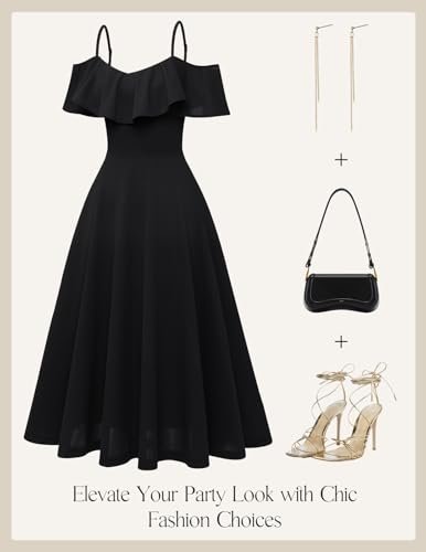 - Eleganta cocktailklänningar: Denna höst-bröllopsgästklänning för kvinnor har spagettiremmar och en passform och utsvängd silhuett som betonar dina kurvor. Midi-längden och kråhalsningen skapar en tidlös glamour.