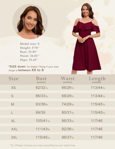 - Modest design: De justerbara spagettiremmarna säkerställer en lämplig passform för alla kroppstyper. Den axellösa designen ger en touch av elegans, medan A-linjens flare förbättrar din naturliga silhuett och skapar ett smickrande och feminint utseende.