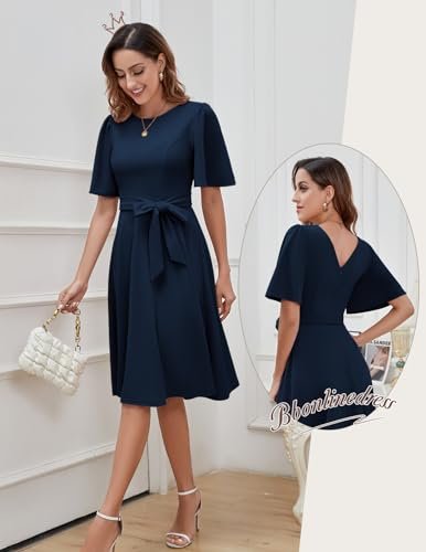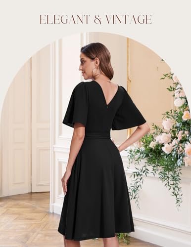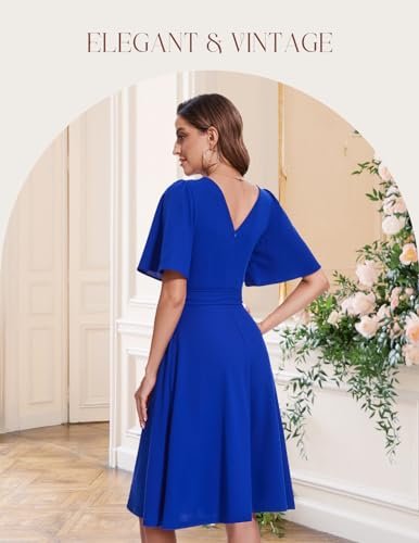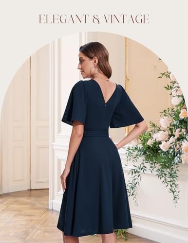- Formell bröllopsklänning för cocktail: Elegant v-ringning och båtringning ger en touch av glamour. Korta, utsvängda ärmar kan smickra armarna. Dess midilängd garanterar en mångsidig stil som passar alla tillfällen och ger dig en touch av tidlös elegans.
