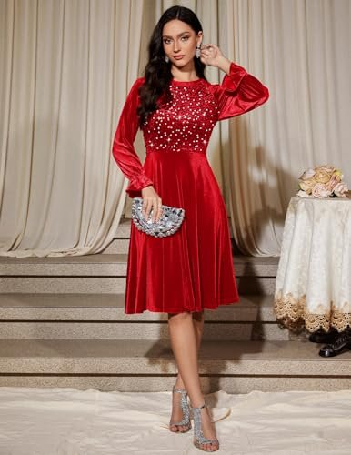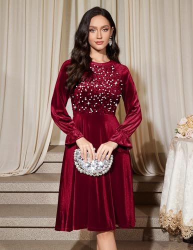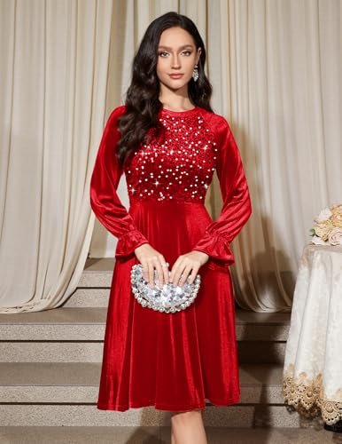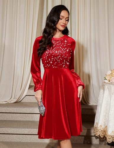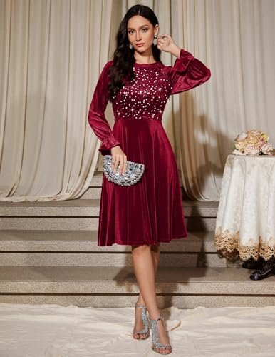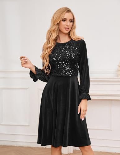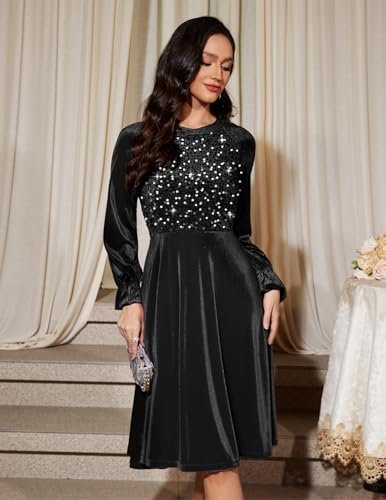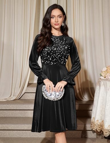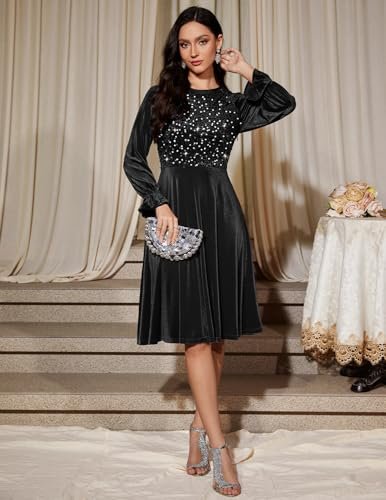 Bbonlinedress Sammet paljett cocktail långärmad klänning för kvinnor...